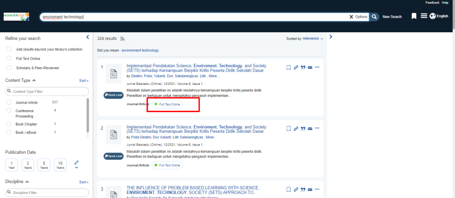 - Đối với tài liệu cần sử dụng, chọn Full text online